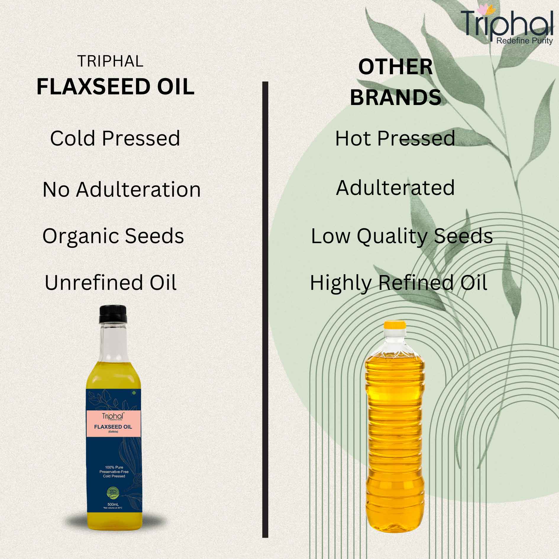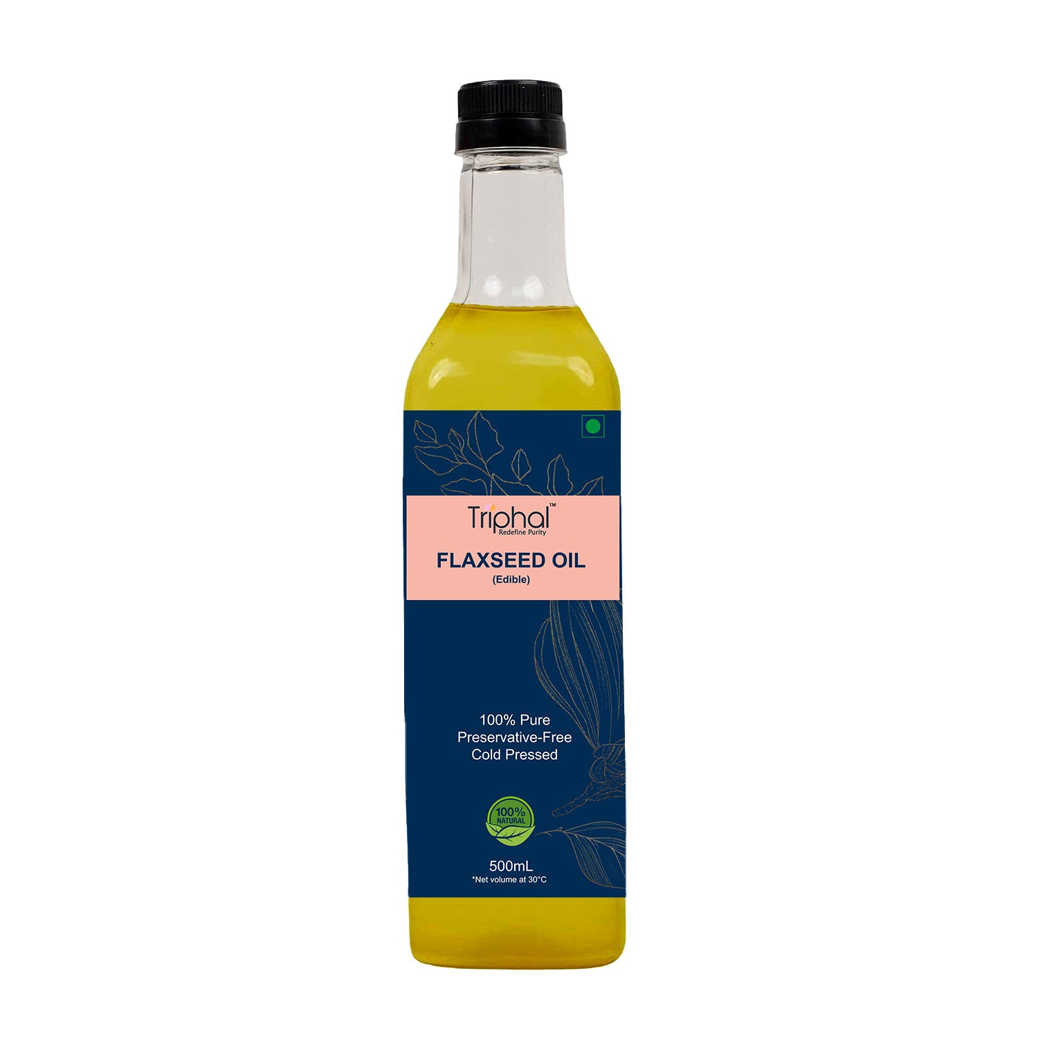 Extracted using a wooden cold press, this oil retains natural goodness of sesame. Packed with omega-3 fatty acids, Triphal's flaxseeds oil supports well-being.