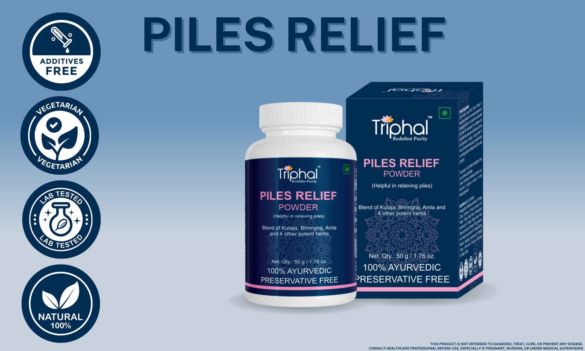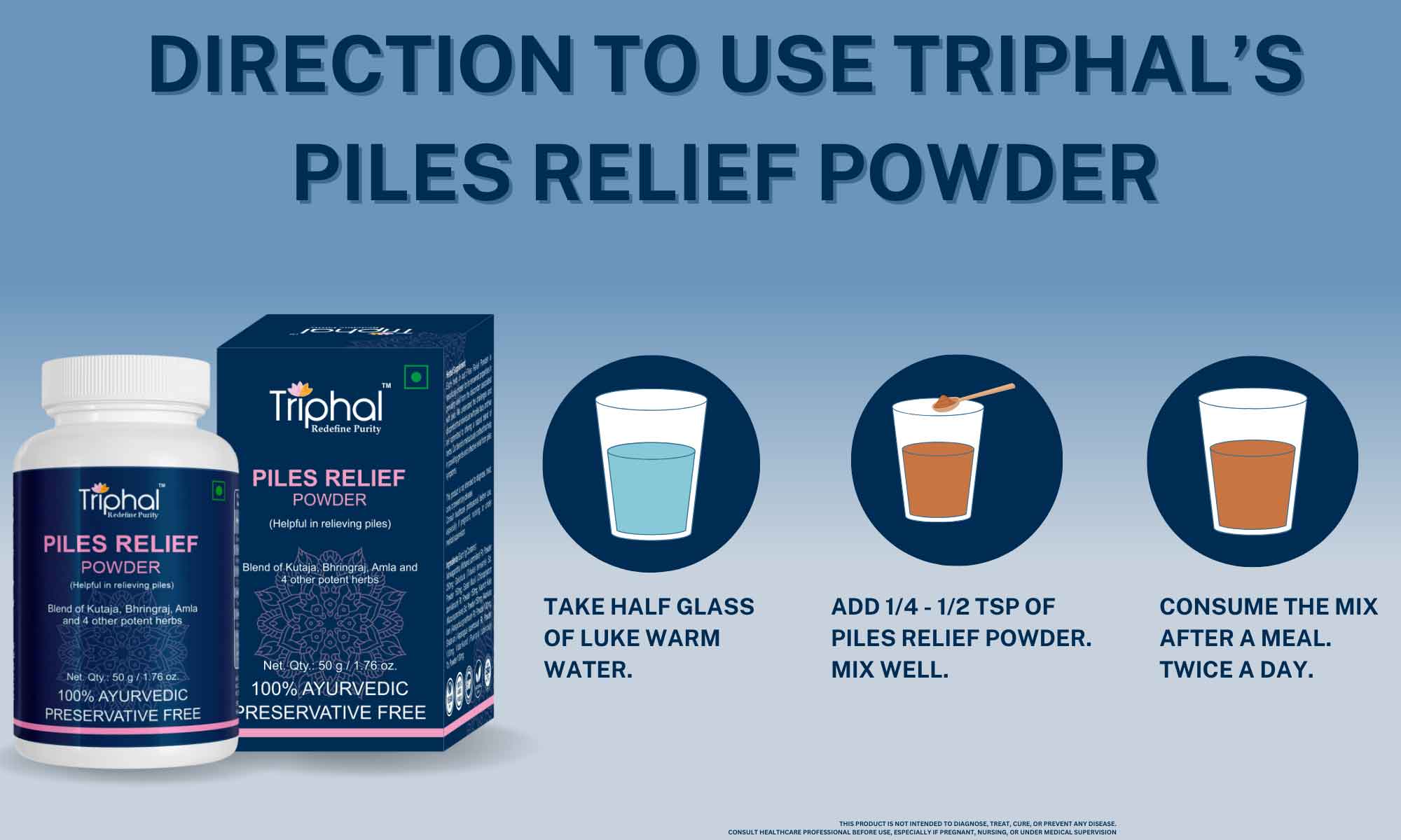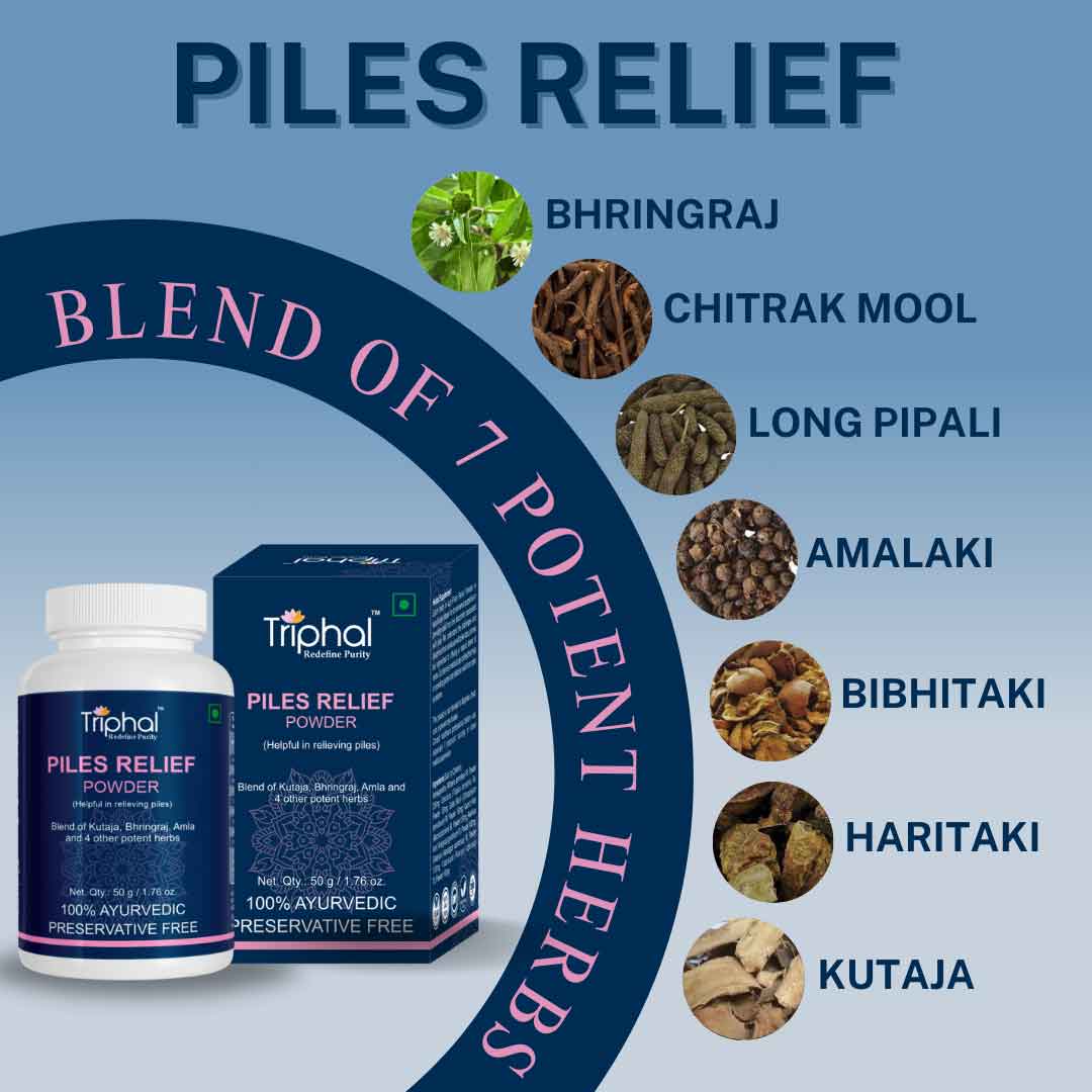 Experience the natural support of Piles Relief Powder by Triphal, a carefully crafted herbal blend aimed at enhancing your digestive wellness and providing relief from piles. This unique formula combines the traditional wisdom of herbal practices with the power of Haritaki, Bibhitaki, Amalaki, Kutaja, Bhringraj, Chitrak Mool, and Pipal. Each ingredient has been carefully chosen for its ability to contribute to a comfortable and balanced digestive experience, helping to maintain regularity and overall digestive harmony.