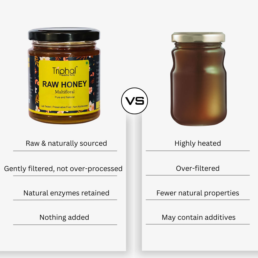 Pure and Unprocessed: Triphal Raw Multifloral Honey is untouched by heat, pasteurization, or additives, preserving its natural integrity and flavor.