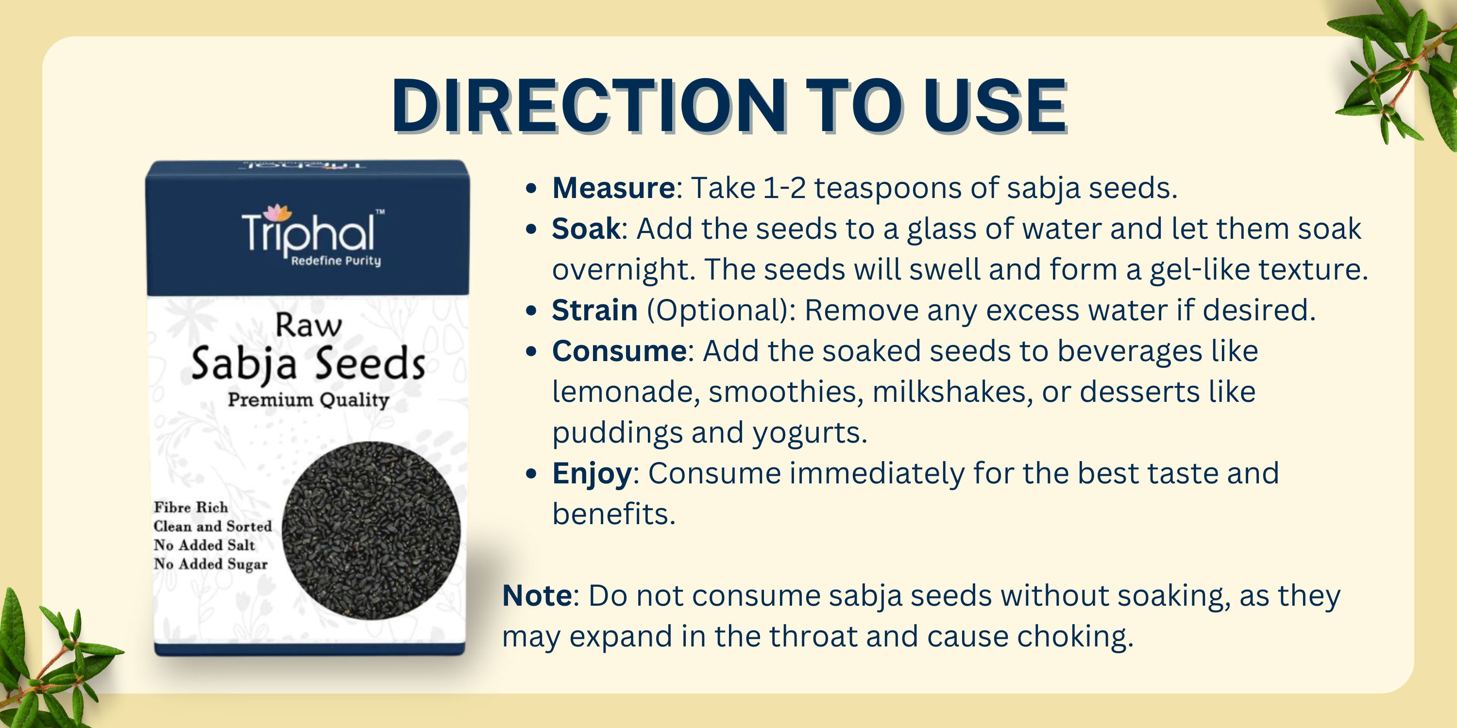 Sabja seeds can be consumed at any time of the day. For weight management, consume them 30 minutes before meals. To cool the body, use them in drinks during the daytime, especially in summer.