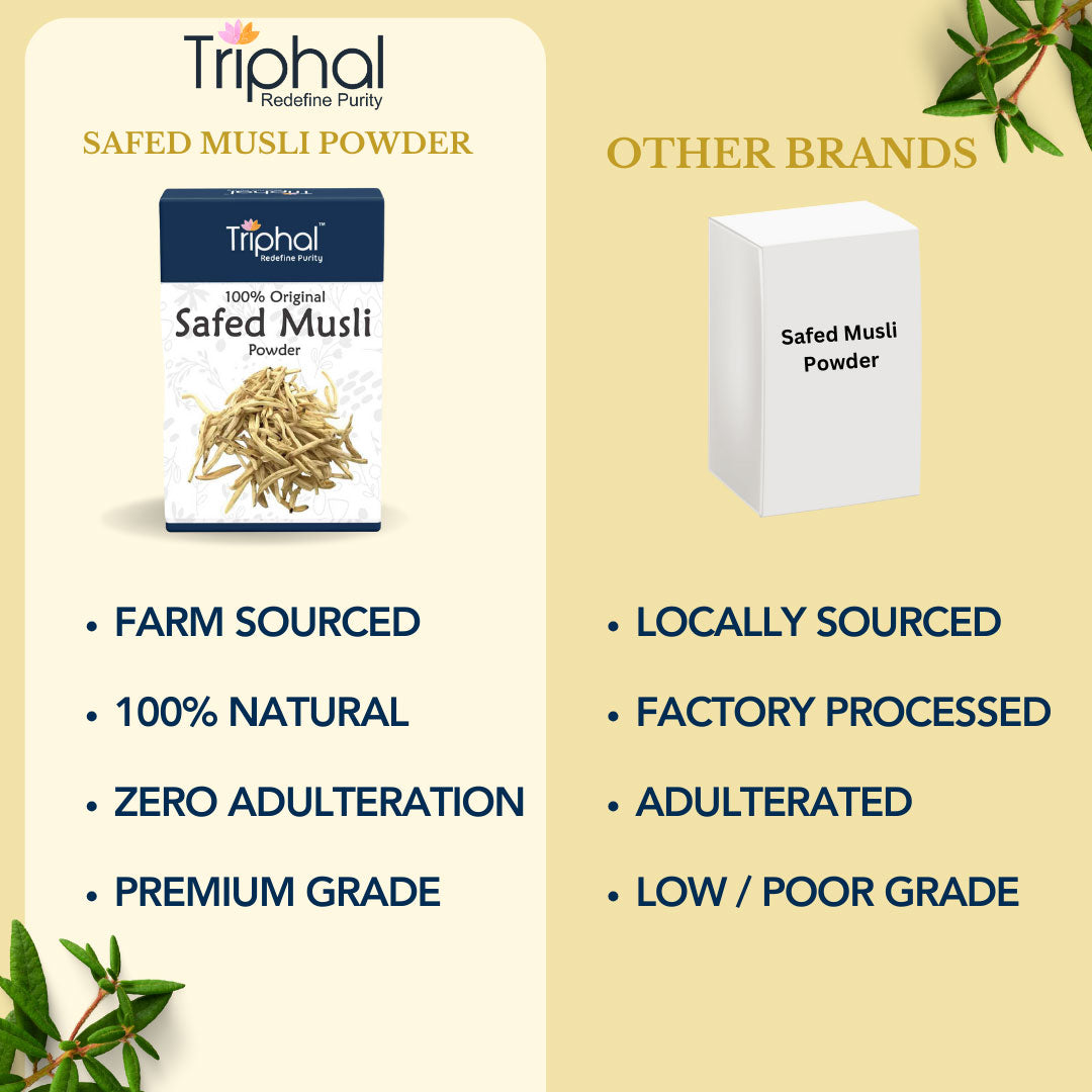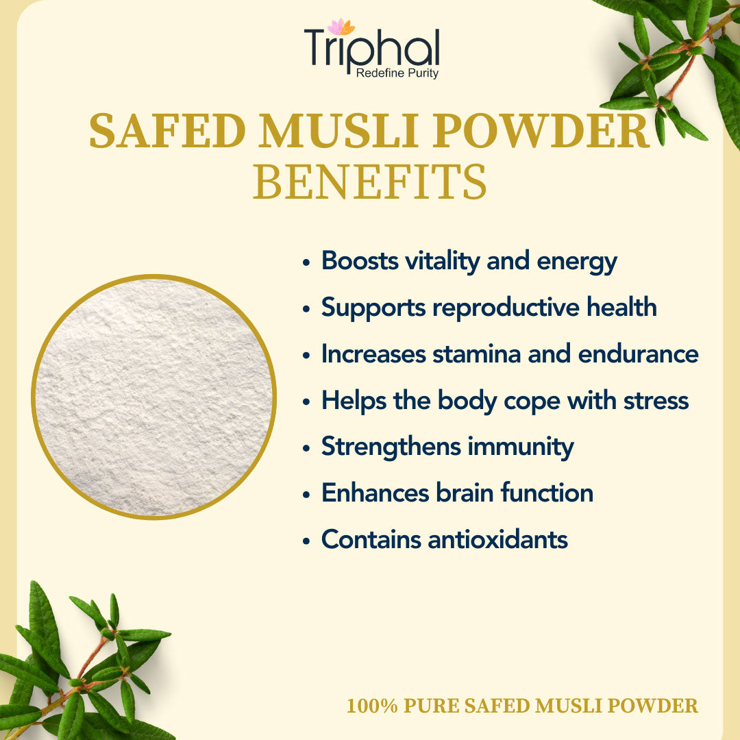 Yes, Safed Musli Powder by Triphal is 100% natural and pure and is safe for most individuals. However, it is always recommended to consult with a healthcare professional if pregnant, nursing, or on specific medication.