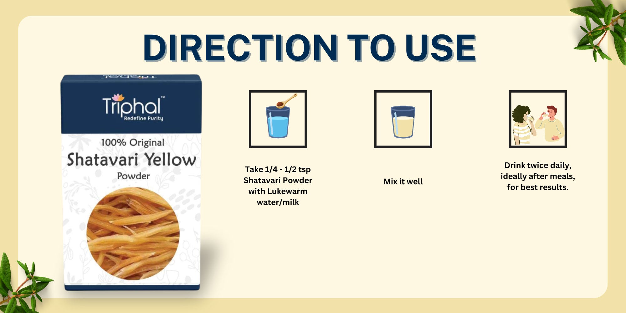 Shatavari Powder can be consumed by mixing 1/4 - 1/2 teaspoon (2-3 grams) in warm milk, water, or smoothies. It is often recommended to take it once or twice daily, preferably with meals, to maximize its health benefits.