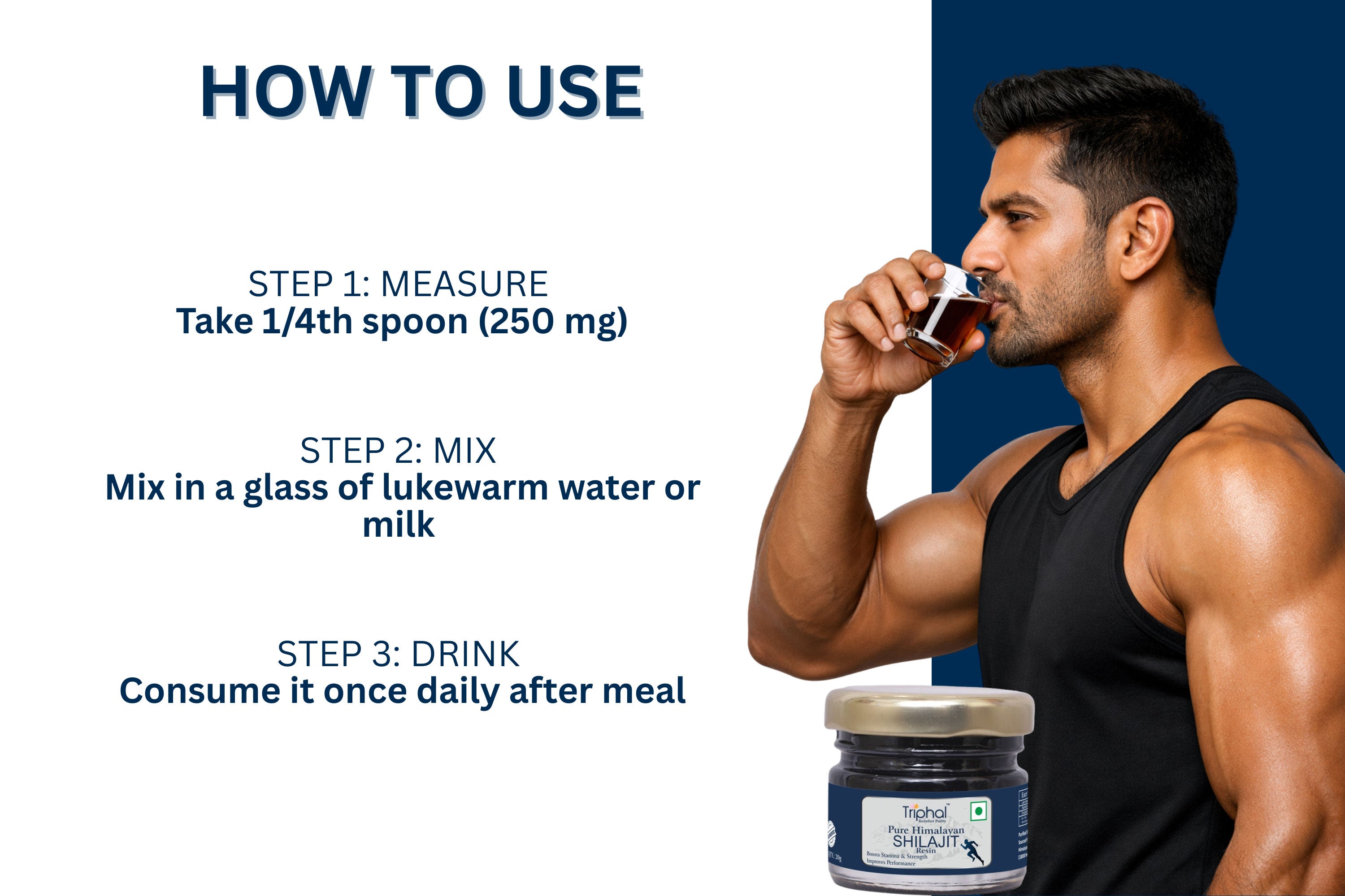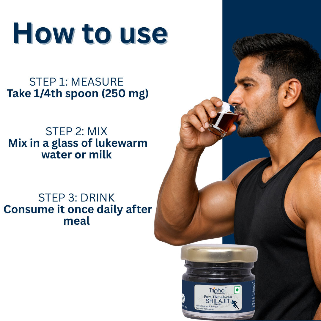 Shilajit resin is best consumed by dissolving a pea-sized ball (approximately 250-300mg) in lukewarm water or milk each morning on an empty stomach. If you experience gastric issues, it is advisable to take it after meals for optimal digestion.